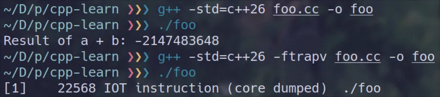 -ftrapvoption to trap for signed overflow in addition.